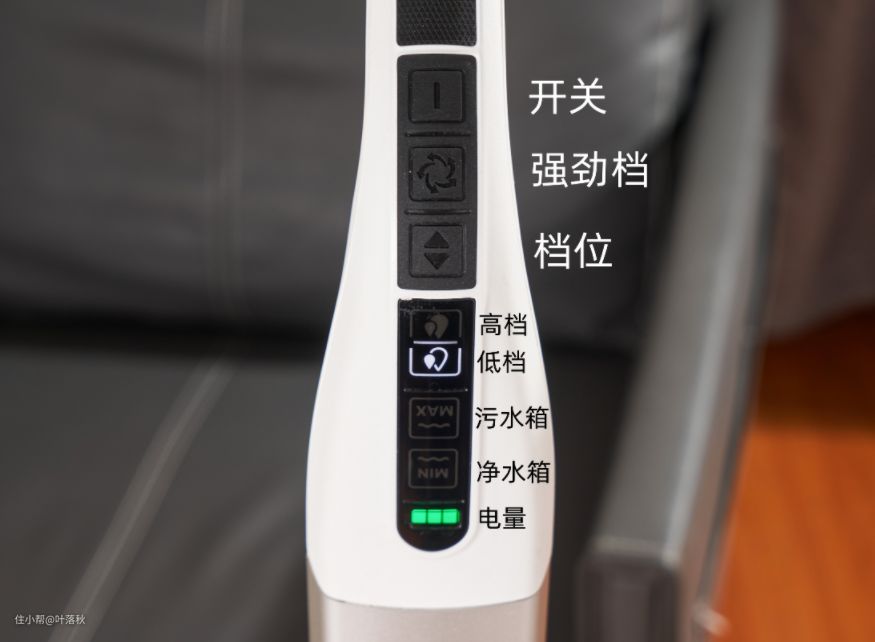档位按键可以切换高低两档,低档适合清洁木地板,温和不损伤,高档清洁瓷砖石材地板。实际清洁效果如何,大家可以下滑看看使用分享部分。