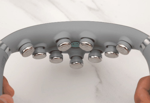 上面两个按摩头是花瓣构造,下面两个则是回旋镖,这样不同的设计更能针对性地按摩到特定部位,比如说颈椎,斜方肌等等。