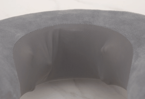 内部贴近皮肤那层采用的则是类似皮革材质,放大看能看出来它有点细微的凹凸不平,摸着手感不错,颈部皮肤贴着也适应度良好。