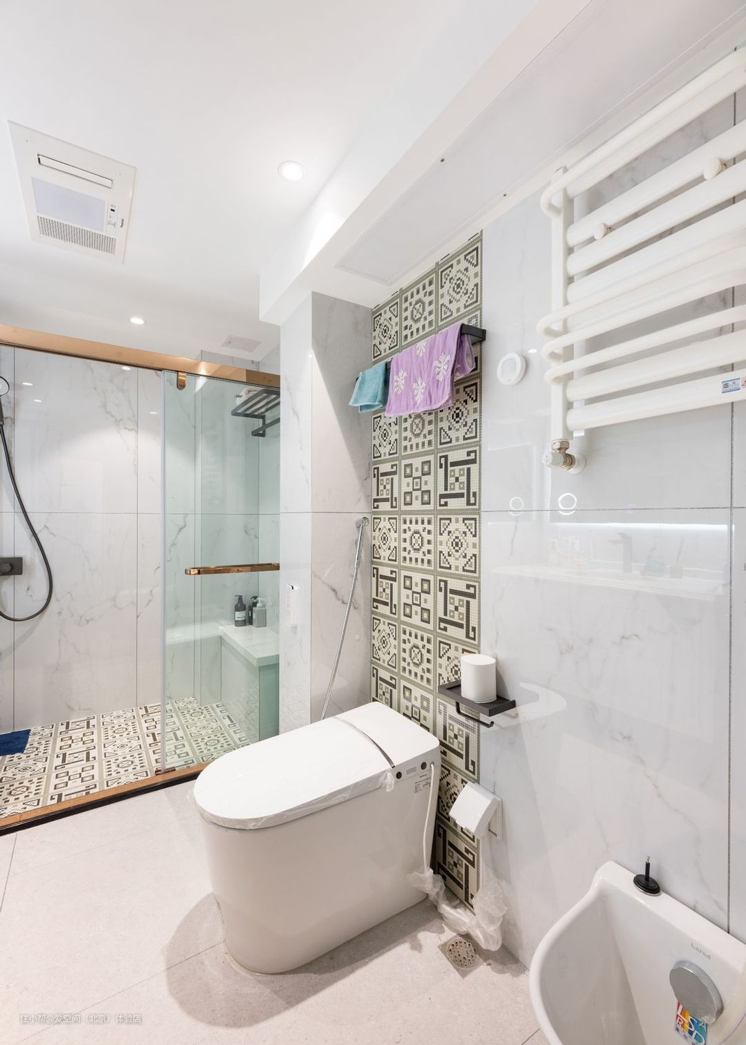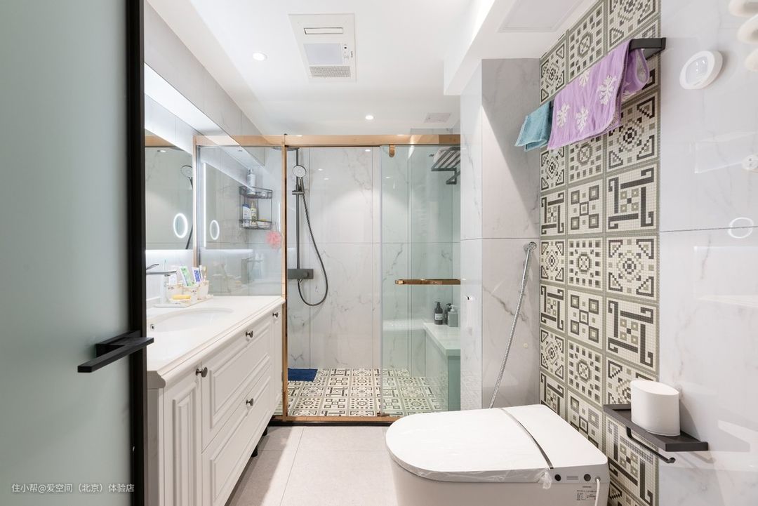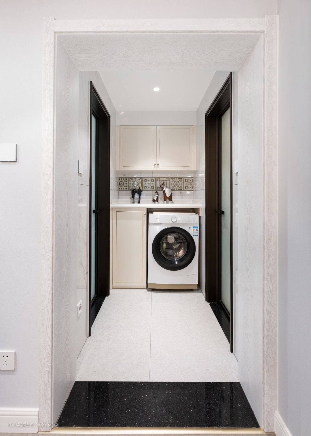 走廊洗衣机柜这样设计好看又实用,卫生间花砖上墙