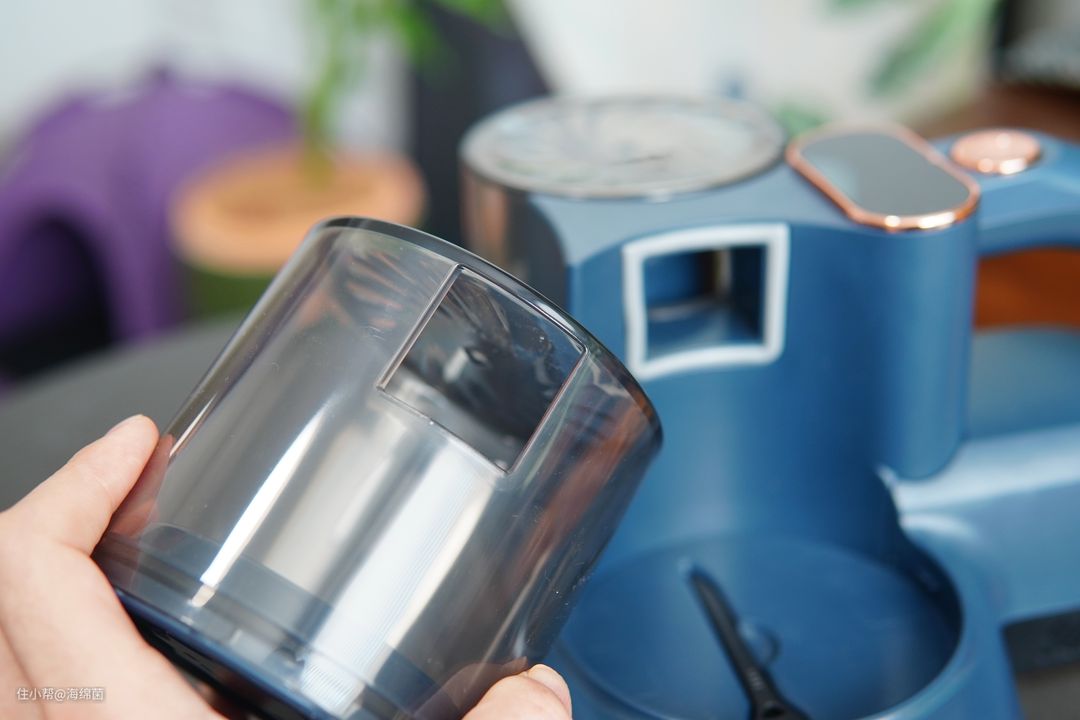 直接倒掉杯子里面的垃圾,然后集尘杯和盖子都可以直接用水冲洗,基本不脏手就能清洁干净了,日常打理非常方便。