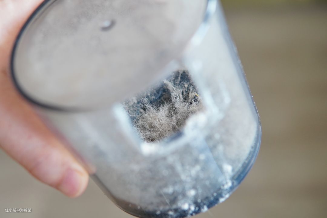 虽然床品才换了3,4天,但还是吸出了不少粉尘,看着还是挺惊人的,同时还可以看到有很多小绒毛,这应该就是小家伙的猫毛了。我家养的是德文卷毛猫,掉毛量不算多,但掉下来的基本都是小小的短绒毛,平时肉眼也很难看到,床单看上去都是干干净净的。但有了这台除螨仪之后,相信猫毛和螨虫以后就都很难再遁形了。
