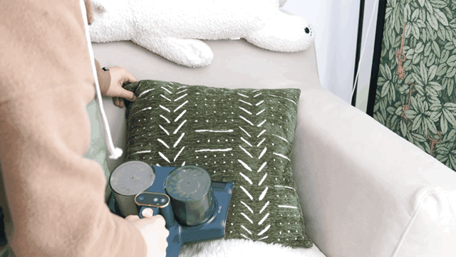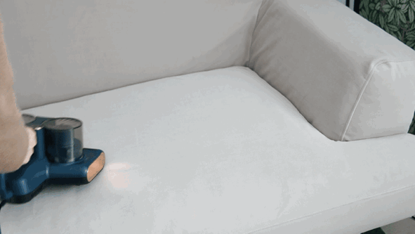 尤其是清理大沙发的时候,因为除螨仪使用起来很灵活,所以各个角度都能轻松的照顾到,基本不会留下清洁盲区。像下面的动图我是清洁了一半的沙发,不难想象,余下的另一半也是一样的步骤,整体清洁效率还是很高的。