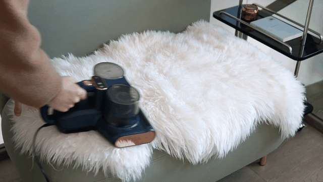 就算是冬天沙发上铺的羊毛垫也能用除螨仪来清洁,可以看到羊毛不会被卷入吸头里,但里面嵌着的脏东西却可以被清理出来。