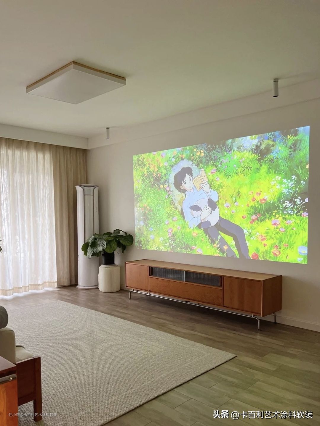 墙面装修的时候刷卡百利海藻泥净味壁膜,加上投影仪就是超级有氛围感的家。