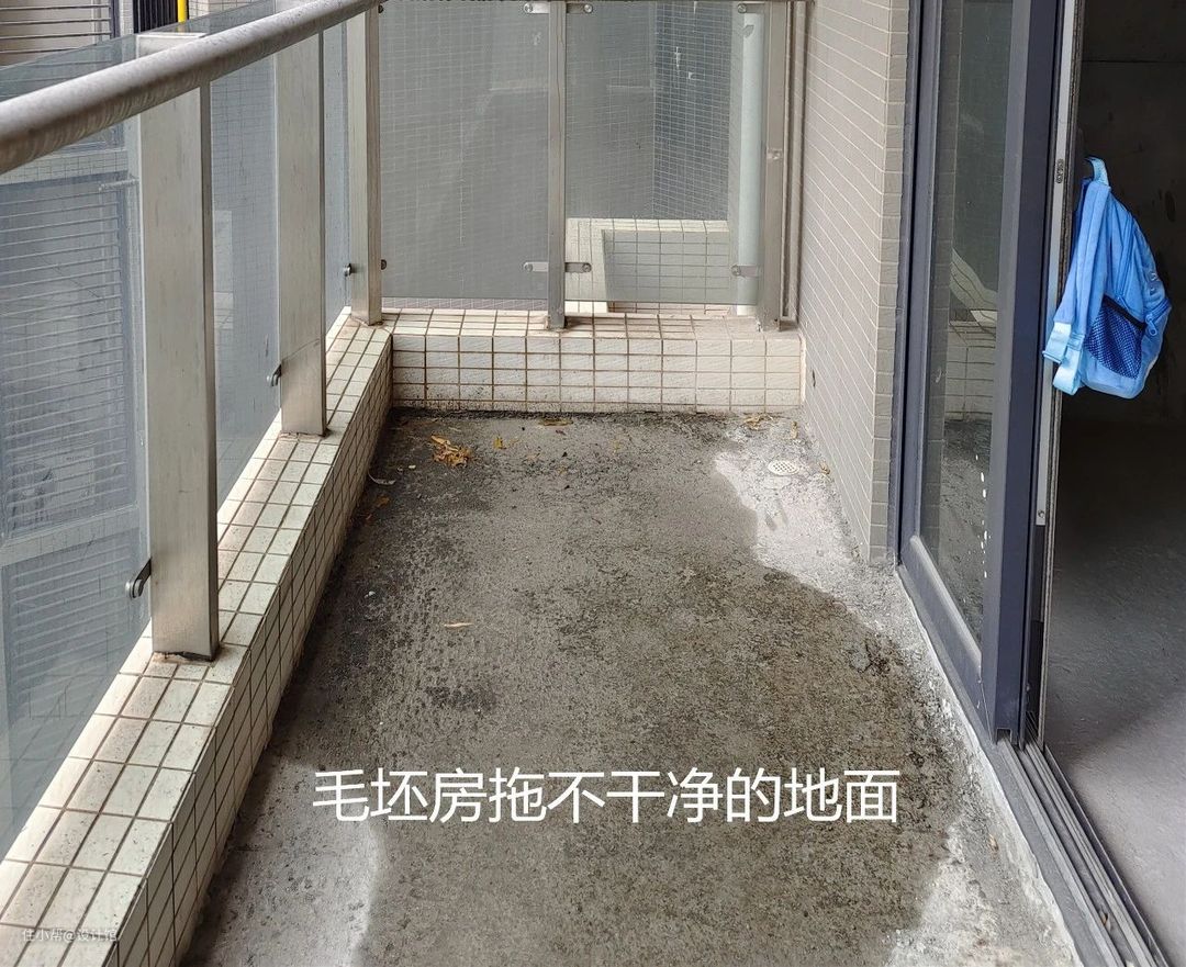 ▲毛坯房的地面,哪怕是洗都是洗不掉的脏,因为水泥沙会一直掉,边洗边脏。