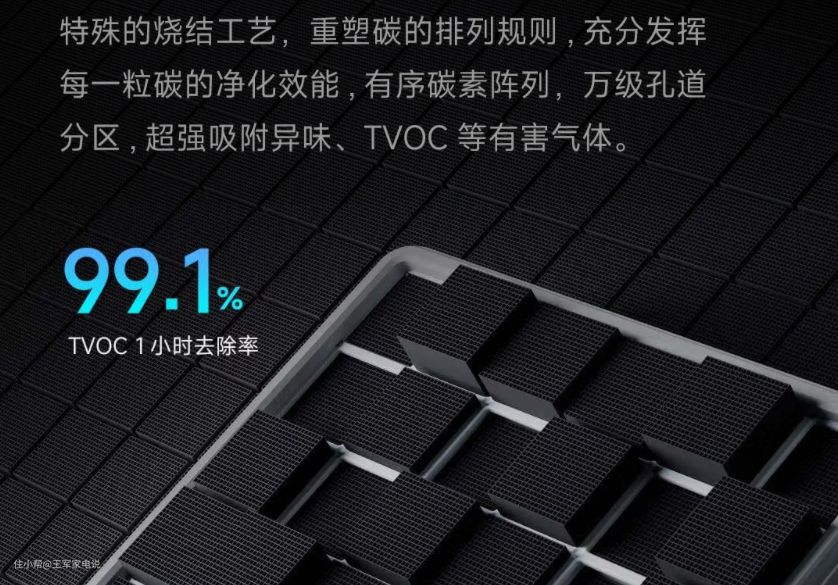 但在TVOC值中,小米Ultra只在宣传上写着TVOC一小时去除率达到99.1%,并没有标注出一个精准的数值,所以具体的TVOC去除效果无法得知。