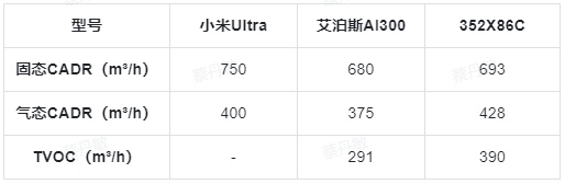 四、横测空气净化器小米Ultra、艾泊斯AI300、352X86C