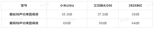 从图表不难发现,三款机型在噪音控制上都表现得比较好,其中352X86C还有微弱的优势,不过这点差距,不是专业人士都很难感知到。