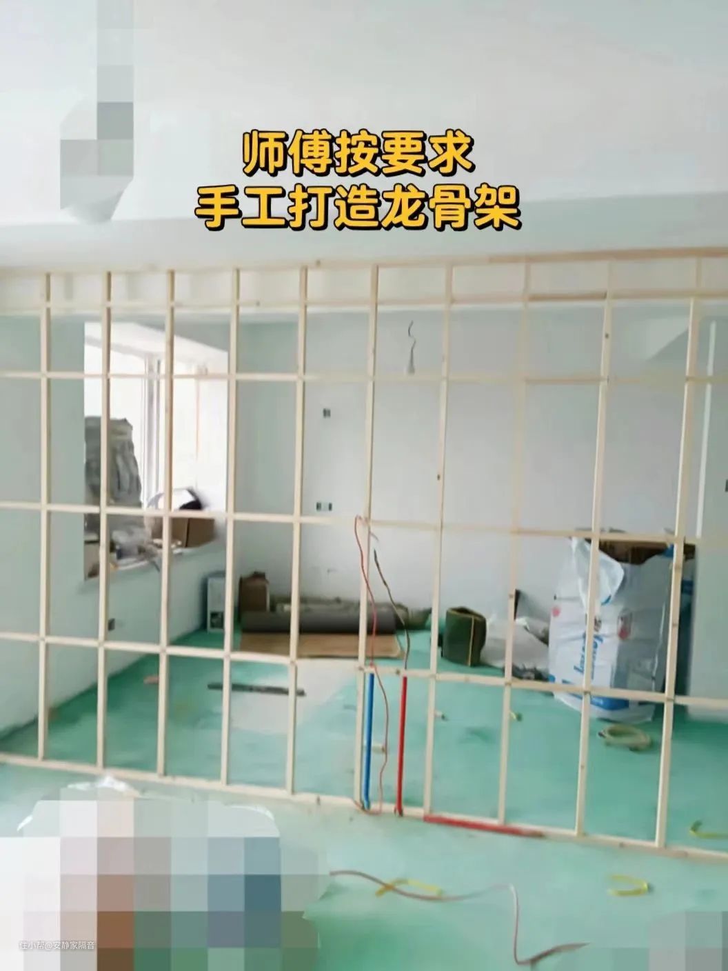 核心工艺:最关键的工艺是龙骨(木方),定制的,需要师傅手工打造,木工师傅也在群里说了这玩意很耗工。没有超出6.5厘米不影响定制柜安装,师傅的付出是很值得的。