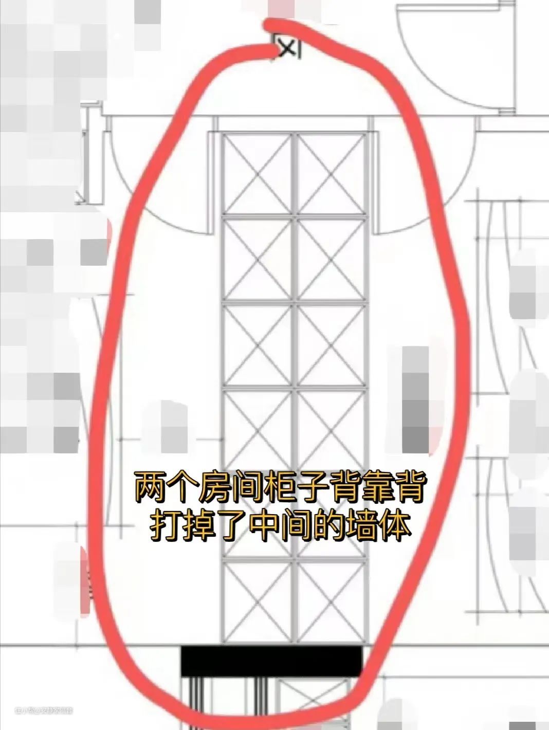 设计师出于功能布局和节省空间的考虑,通常会把两个房间柜子背靠背的墙打掉,节省出十几公分的空间,家装界90%设计师在用这一设计手法。