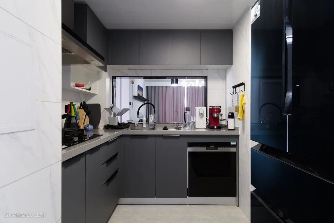 实际上,厨房会有 U 型、L 型这样的说法,依据的是冰箱、水槽和灶台的位置关系,而非橱柜的形状。