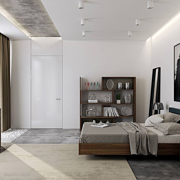 - 通顶无框门(可以用在像这样的侘寂风,加高门洞,一门做到顶,美观度比上一款更加在线了。极简的设计,平板的造型,将锁具也一体化,与门同质同色,钥匙隐藏于门把手上,虽没有那么隐形,但并不影响空间的高级感,使用也会更方便哦)