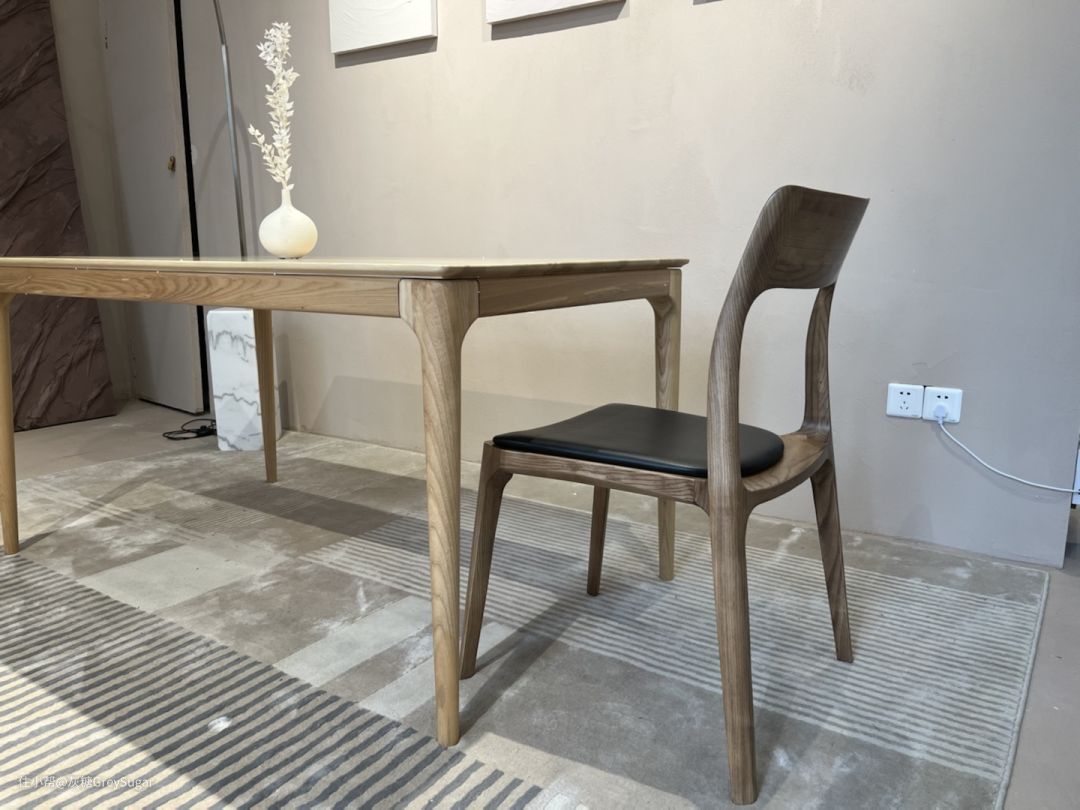 同样是一款百搭实木餐桌,而全实木的材质,让整个餐桌更有一种自然的氛围感。极简的外形下,又有很多精彩的细节处理。