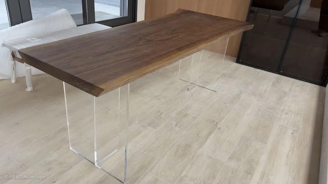 桌面有圆弧和直角两种选择,一种更柔和,一种更有力量感。实木桌面加上透明亚克力悬浮桌腿,一秒提升家居空间的高级感!