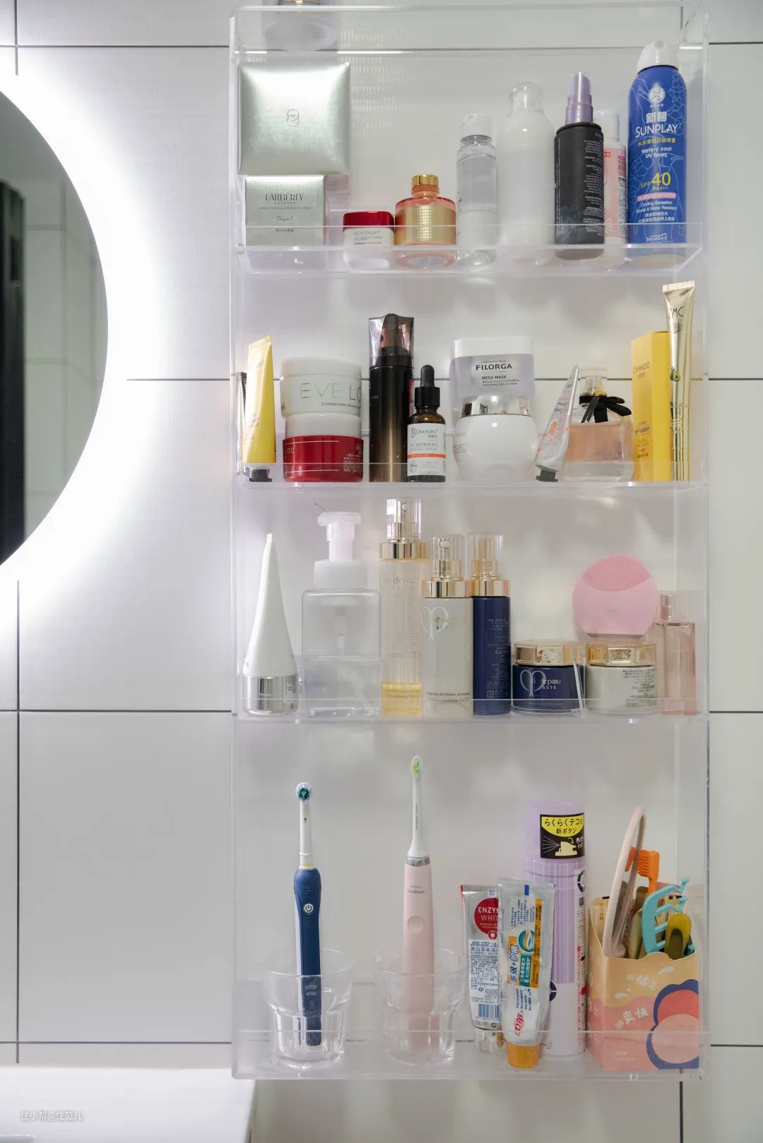 瓶瓶罐罐摊在浴室柜上奇乱无比,一摆到这个亚克力架子上,瞬间变得整洁又有质感。
