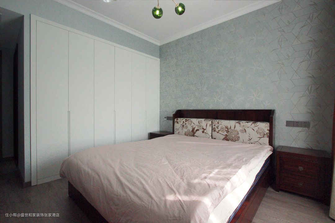 主卧的设计,完美地摆脱了传统的繁琐与沉闷,以更加简约利落的设计语言形塑气质空间,让中式元素与现代风格巧妙融合、碰撞,呈现出了非常浓郁的东方情调。背景墙选用淡雅的色彩,让人感觉到一种清新自然的视觉感,既营造了高级感的居住氛围,又强调一脉相承的设计初衷。