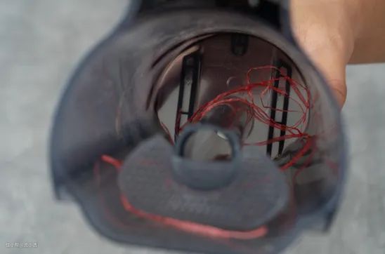 因为吸力大,所以“毛发”都被直接吸进去了,拆下滚刷,也没有残留“毛发”缠绕在角落。