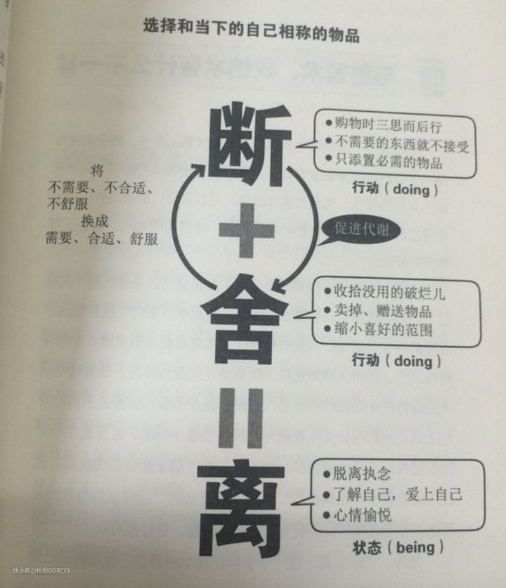 断=断绝不需要的东西,舍=舍弃多余的废物,离=脱离对物品的执着。扔掉不需要的东西,才能得到重要的东西。
