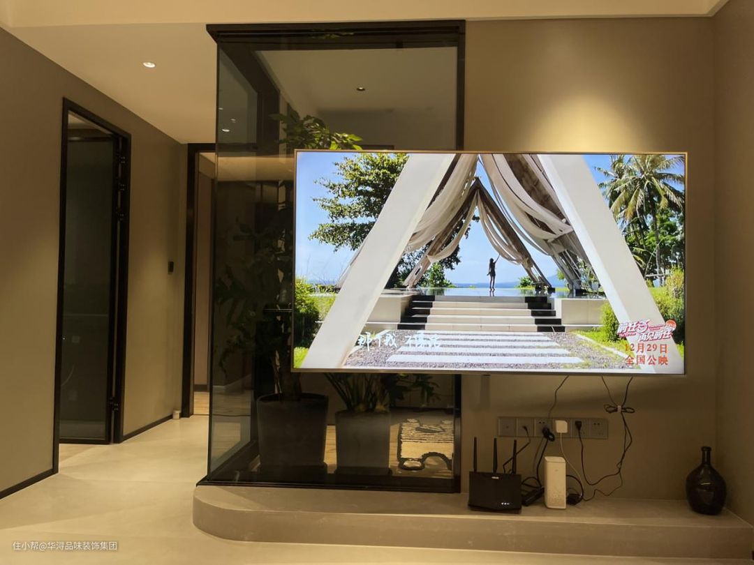 墙角的墙体改成黑色透明玻璃墙后,让空间结构多了一分趣味性。
