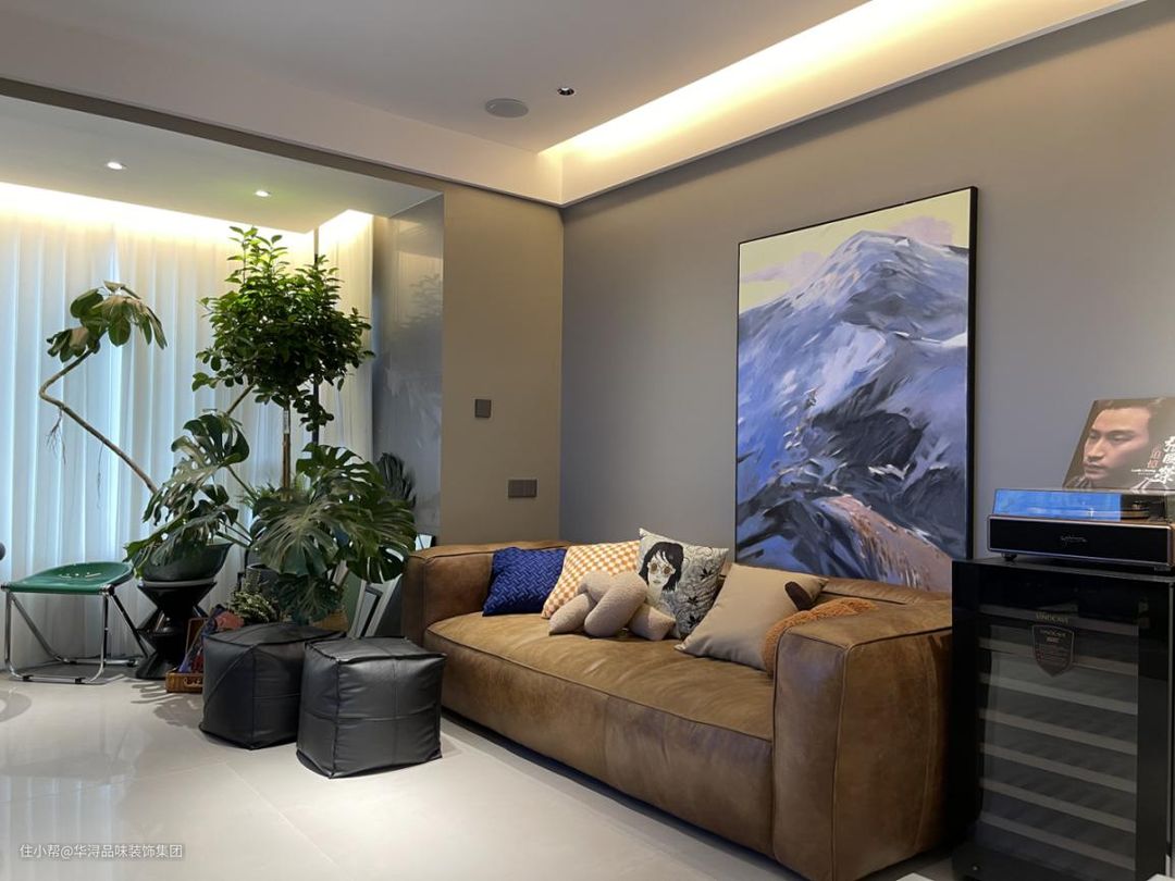 为了让客厅显得更加宽敞,设计师将阳台做了入户式处理,墙角摆放上各种大棵绿植盆景,非常温馨。