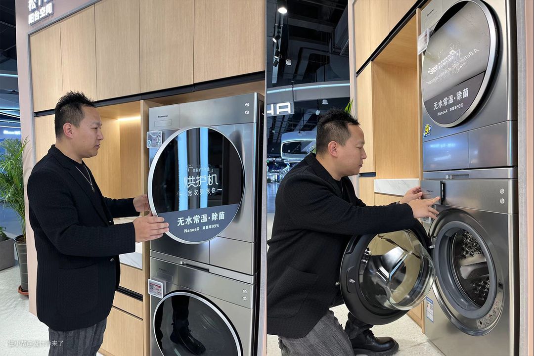 继续向前,映入眼帘的是松下高端品牌另外一个系列9098p+L166烘护套装,在店员的介绍中了解到该款产品的销量一直出于前列。它洗衣烘干分开打理,清洁起来高效又安全,这款产品完美解决了因在阳台晾晒衣物占地空间大或家里不支持晾晒的业主们的困扰。