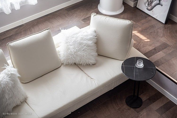 沙发采用网购。客厅使用奶白色皮质沙发,高级又大气,坐感软软的,但是支撑力很足,坐深很深,整体皮质包括沙发包边等细节都做的挺好,材质都是手工缝制的头层牛皮,手感也很细腻。