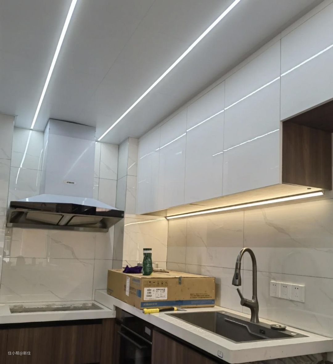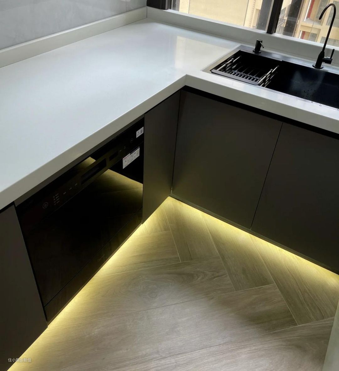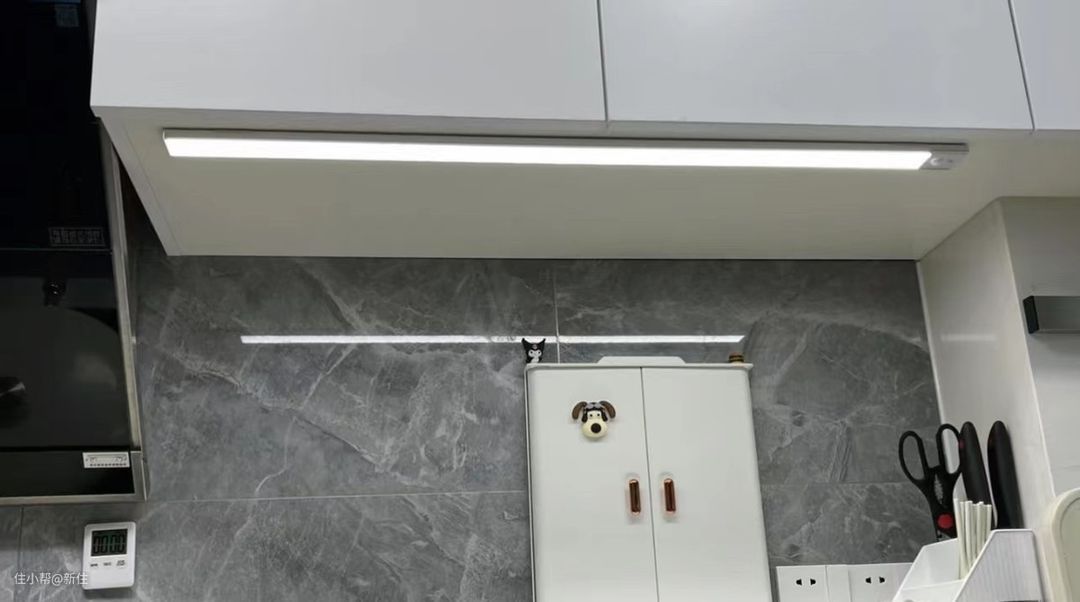 装好的一瞬间,会觉得橱柜踢脚灯,很炫酷,装饰性不错。