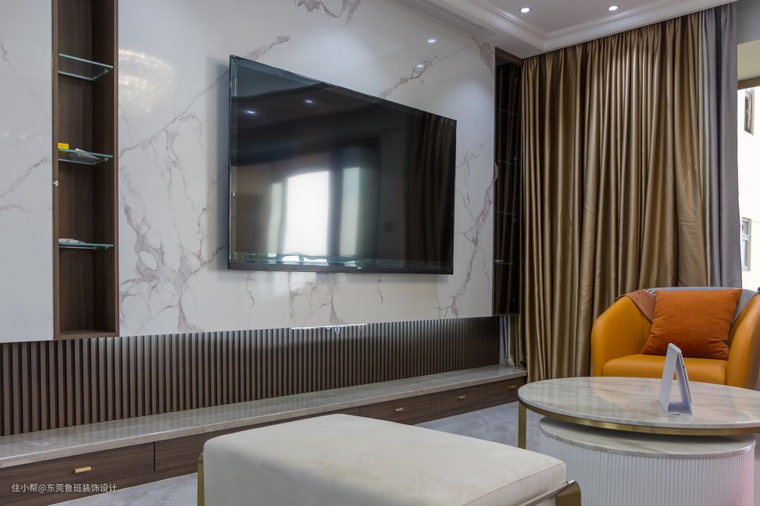 小家庭很小,所以不要把电视背景墙做得太厚,导致更窄,浪费宝贵的空间。人眼与电视的最佳距离是电视尺寸的两倍。如果电视背景墙太厚,会缩短电视与人眼的距离,影响电视观看效果和人眼视力。