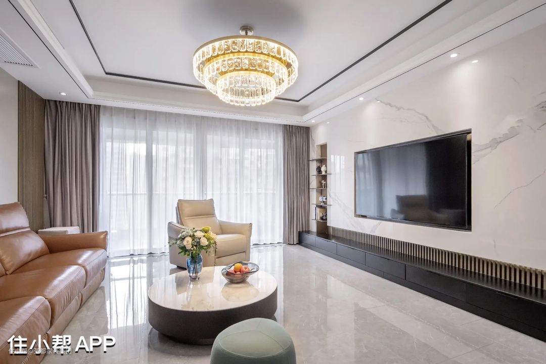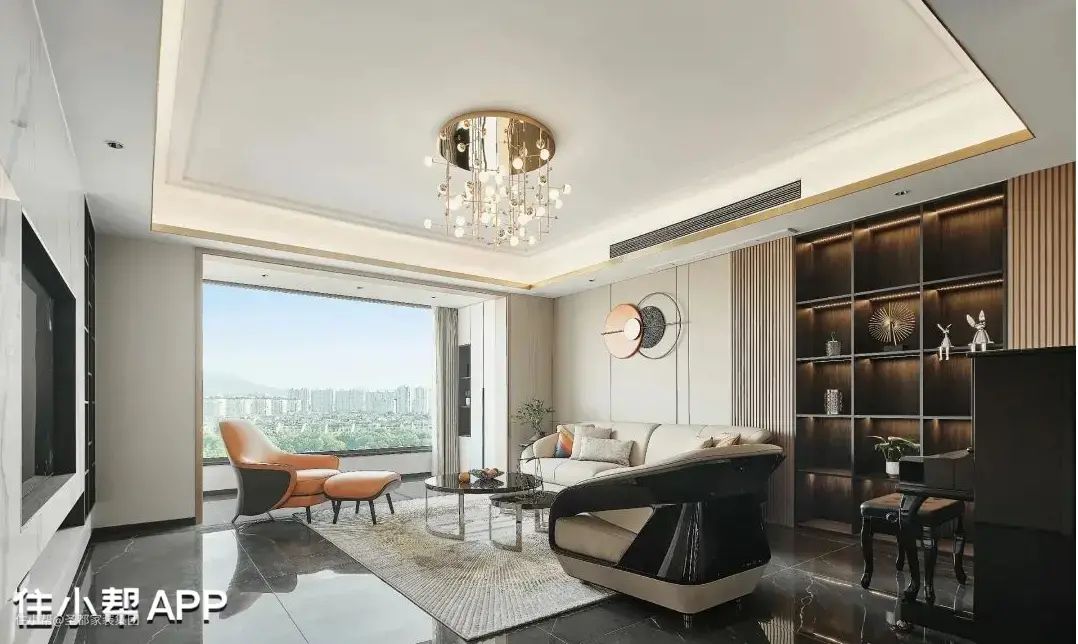 大面积的落地窗,能360°引光入室,也能让空间更显利落和大气。
