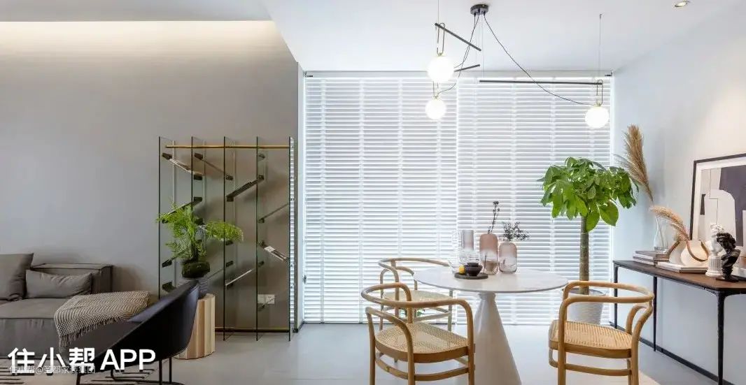 阳光透过百叶帘探入室内,可以让室内的采光更加优越。不仅如此,百叶帘还可以灵活调节光线投入的多少,进而营造出不同的氛围感。