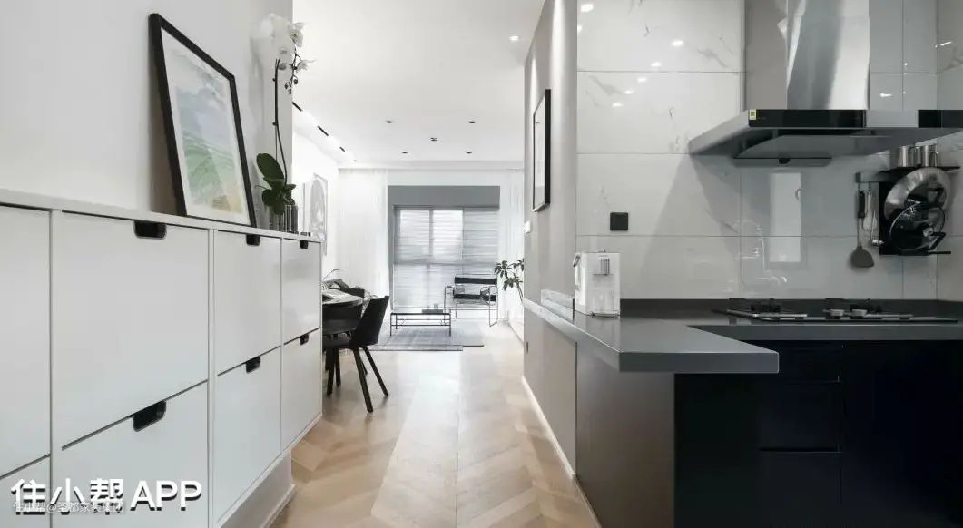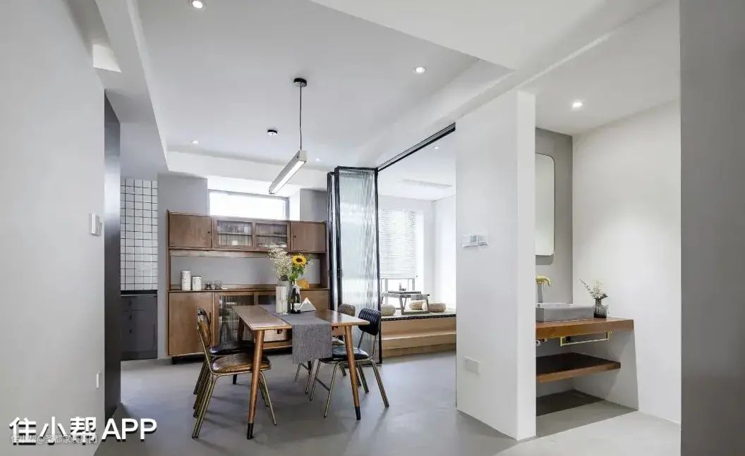 将客餐厨阳台等功能区放在一个开放式的空间里,不仅能让光线得以尽情入驻,还让视线无所阻碍,更显舒朗开阔之感。