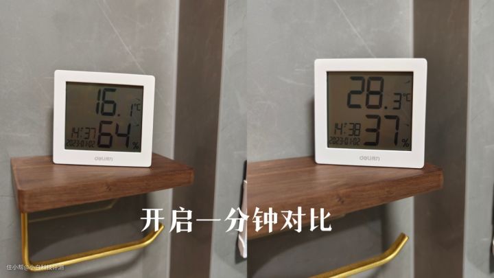 3100W大功率,快速制热 前面也说了我家之前的那款普通的浴霸加热效率实在是太慢了,从开启浴霸到真正带来暖意,整个过程差不多需要10分钟,每次洗澡前都要提前去开启,要么就是快洗完澡了浴室还是凉飕飕的,对于我来说这个制热时间自然是没办法接受的。 这款飞利浦P6速热浴霸具备3100W的加热效率,是目前市面上最大功率快速制热浴霸。可能大家对于3100W没什么概念,这么说吧,2500W左右的浴霸功率加热速度就已经蛮快了,可以两分钟左右带来温暖。 而飞利浦P6速热浴霸每一次加热都很快速,基本上就是在浴室里面脱下衣服的时间,就可以感受到温暖的感觉了。 我在开启前和开启一分钟后分别测试了浴室的实际温度,可以看到开启前温度为16.1度,开启一分钟后温度为28.3度,一分钟之内温度升高了12度左右。 +测试图