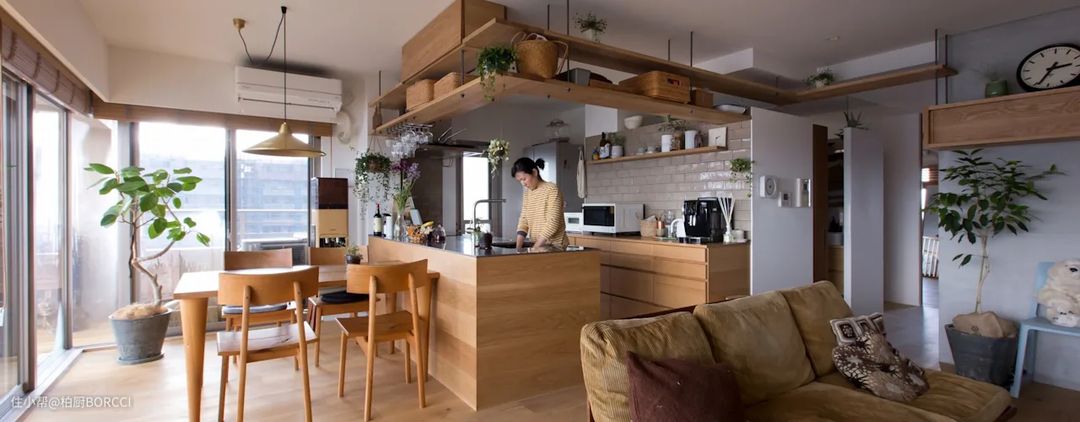 厨房同样使用了和小敏家相同的半开放式,增加通透感的同时,也增加了和女儿之间的互动。不得不说,半开放式厨房和中国家庭的匹配度更高吧!