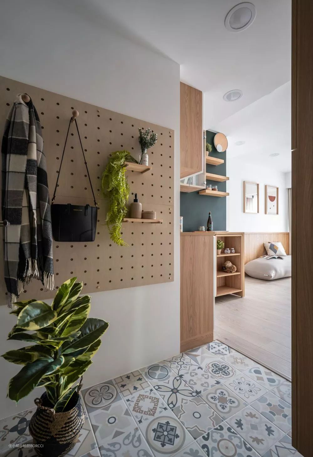 玄关虽然小,但是功能齐全,一进门就设计了小而美的收纳空间。