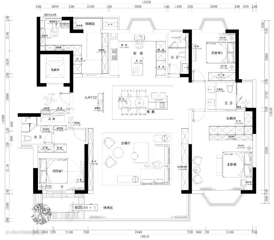 3. 客厅阳台入户处理,同时与卧室阳台打通,改造成休闲区,为居者创造更宽敞舒适的公共休闲空间。