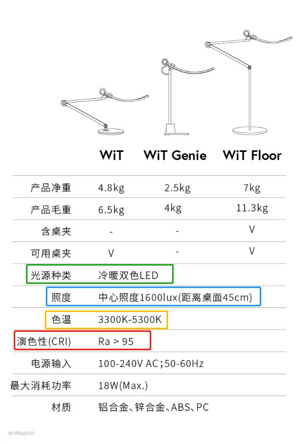 经过多方比较,最终我入手的是明基WiT Floor 落地护眼灯,既然咱们前面说了那么多的参数,这里直接po出参数来看。