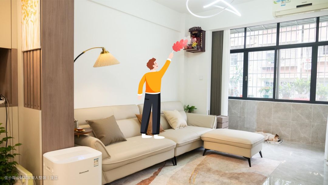这部分面积占比大,打扫起来需要更长的时间,尤其注意沙发的保养清洁,电器可以优先清洁,然后套上防尘罩,防止扬尘进入内部。