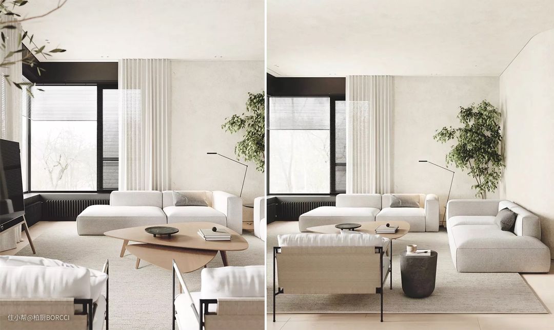 除了硬装材料,软装材料的作用也不可小觑。羊毛,棉麻,皮革,竹藤等自然材质的天然色彩和独特质感也是体现高级感的关键。