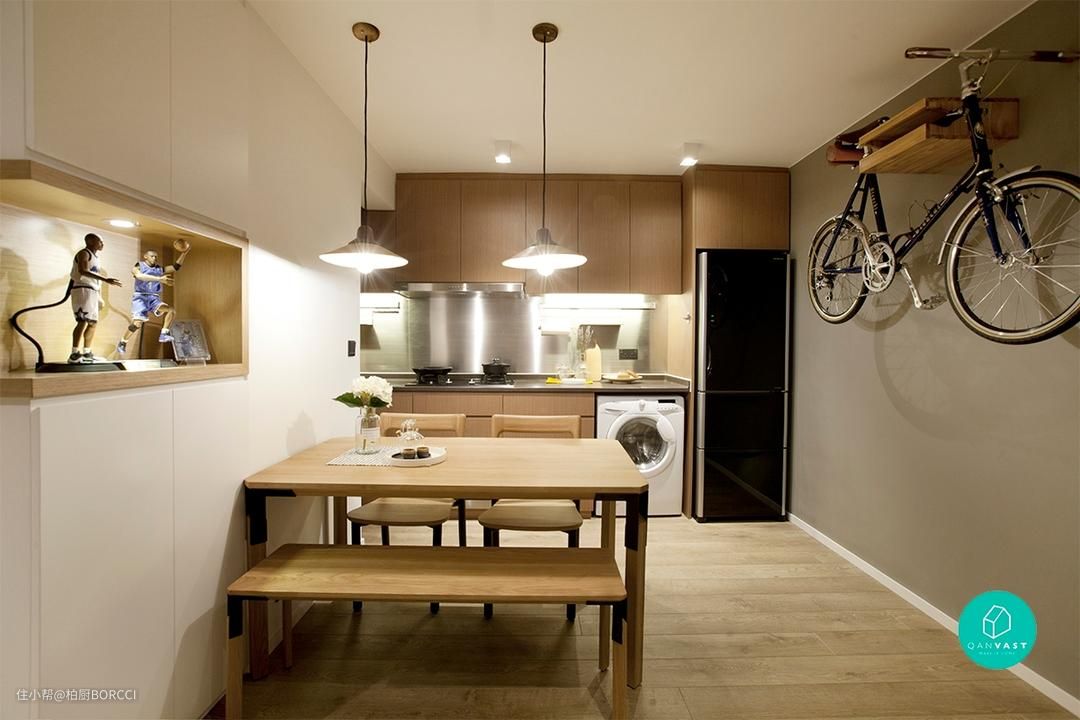 原色空间温暖的浅木板铺设地面与部分墙面,质朴自然的气息浸润着每一个角落。浅色素净的色调配合简约现代感的家具,透着干净的气息,给人的感觉也很松弛。