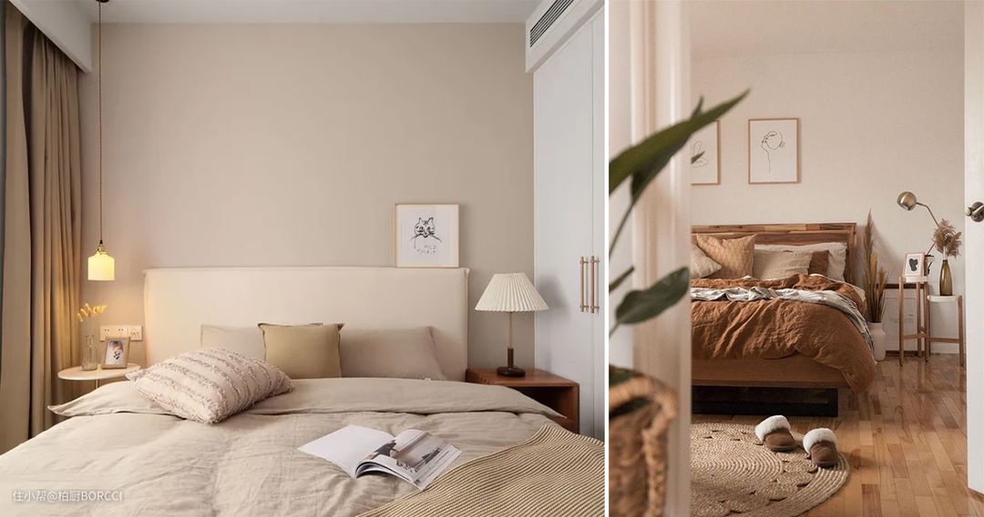 △卧室是家里最放松的地方,黑白灰过于清醒冷静,浓郁的色彩会太过热情,奶油色的混合搭配,仿佛薄纱轻柔笼罩,更利于睡眠。