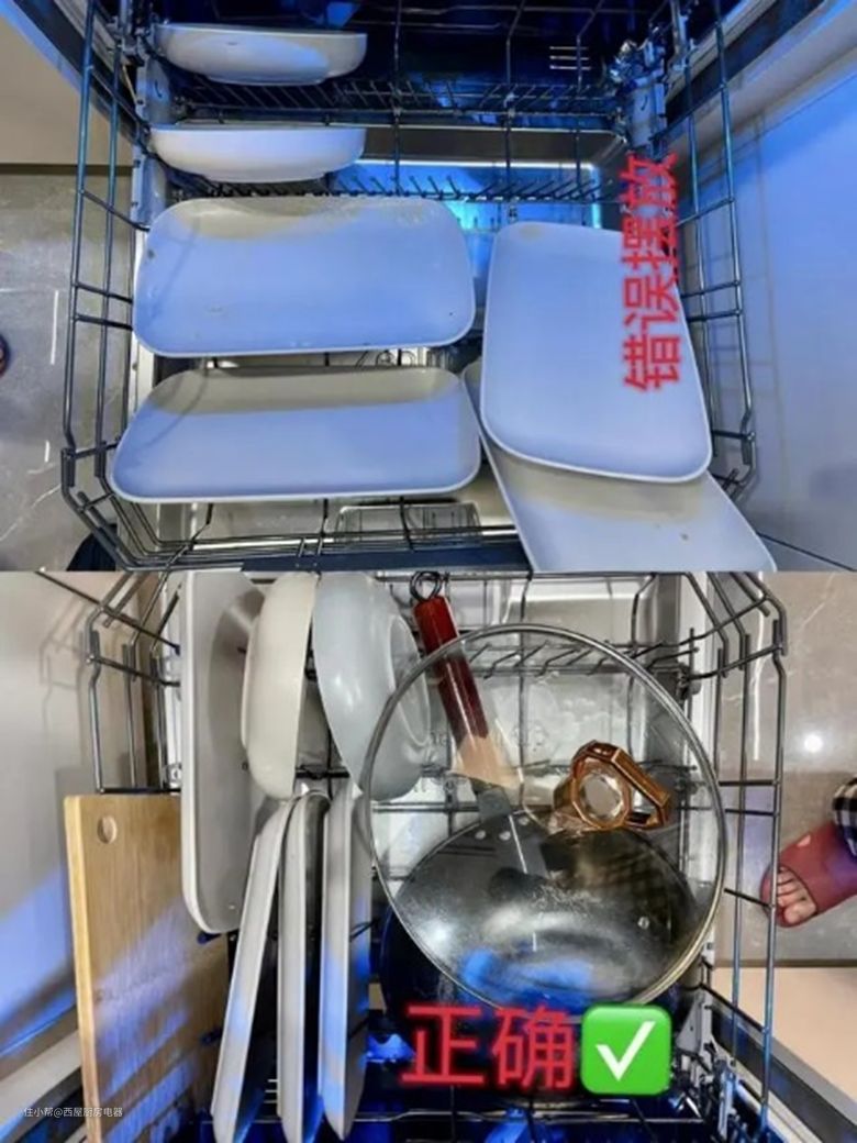 很多人觉得洗碗机洗不干净,很大一部分原因是没有根据餐具情况选择合适的模式,或者餐具摆放不正确,水柱没办法对餐具进行全面的冲洗,导致餐具上有残留洗不干净。