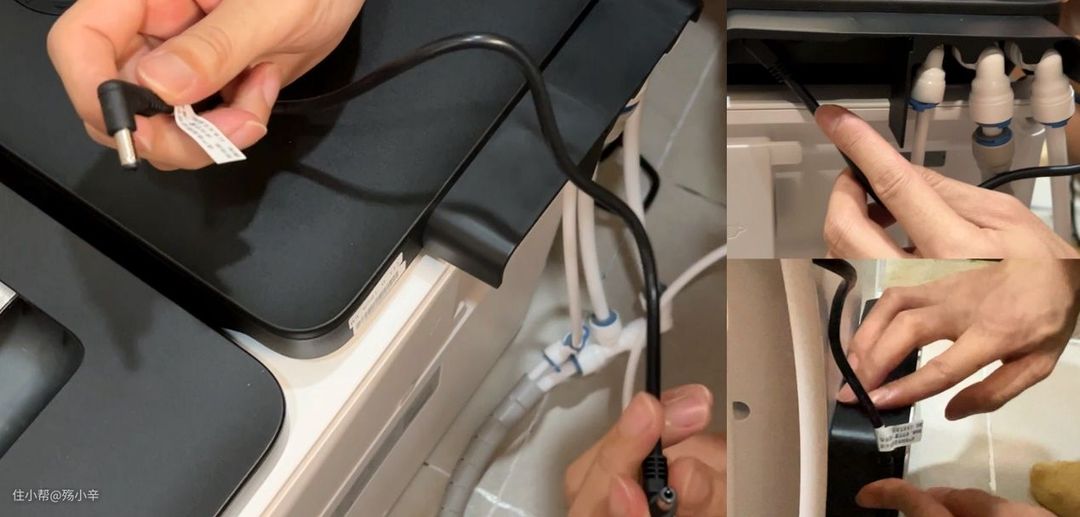 把附赠的电源线分别连接上下水模块和烘干模块