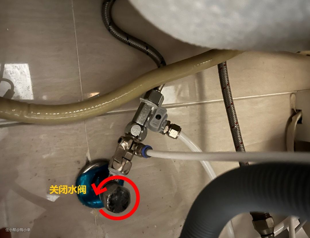 安装清水三通阀时记得关闭水阀(一般是逆时针旋转水阀是关闭)