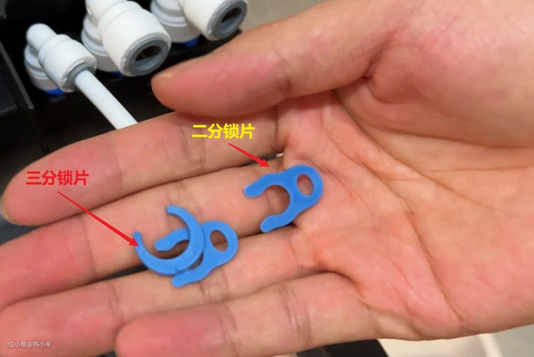 锁片主要就是为了防止水流突然过大或其他意外发生时,水管从接口处脱落。安装水管完毕后要加上锁片,拔水管时要先拿掉锁片。