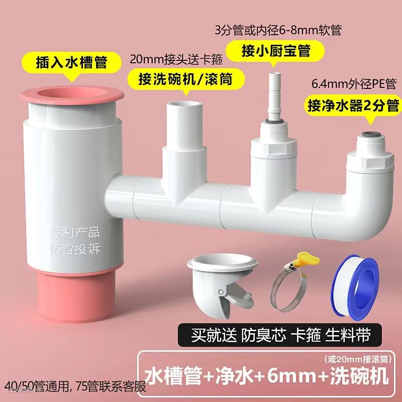 我是安装在厨房,厨房里装了净水器、厨余垃圾处理器,所以买了这样的↑,中间的那个3分管口就是接扫地机器人下水管的。
