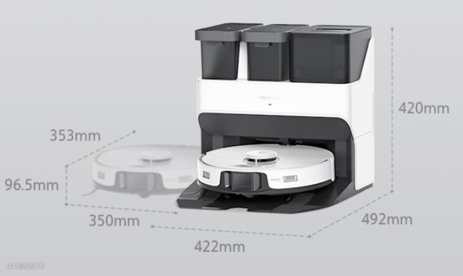 石头扫地机器人和基站的尺寸数据: