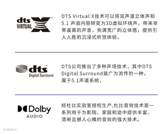 该技术是雅马哈与 DTS 合作定制优化的虚拟 3D 环绕模式,为更好地体现前后左右甚至垂直方向的声音。