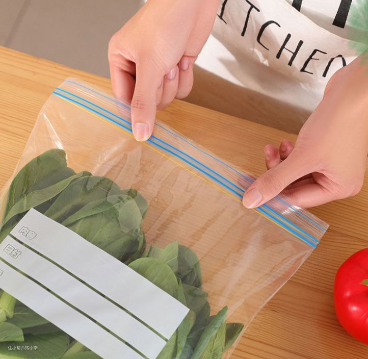 素菜本身能在一般的冰箱保存3天,就能在这个保鲜袋里面保存5天,洗切好,按每餐的分量分装。