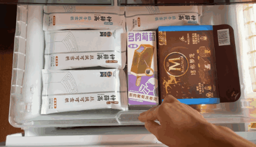底层速冻饺子、肥牛等,上层放冰淇淋、雪糕(迷你梦龙超好吃)
